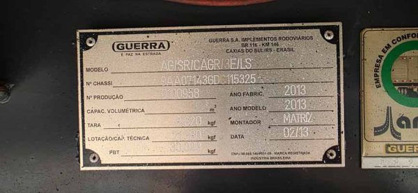 GRANELEIRA GUERRA 2013/13 s/pneus vanderleia 13.50mt. 1F71